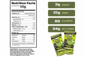 Sour Gummies are packed with 15g of fiber per serving to support gut health and digestion, making them perfect for staying balanced throughout the day. With just 55 calories and 3g of sugar per bag, they’re ideal for keto enthusiasts or anyone seeking a low-calorie snack. Featuring the bold tangy kick of Green Apple Rattle flavor, these gummies deliver a refreshing and exciting snacking experience.