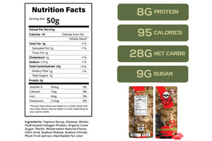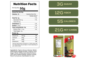 Sour Gummies are packed with 12g of fiber per serving to support gut health and digestion, making them perfect for staying balanced throughout the day. With just 55 calories and 3g of sugar per bag, they’re ideal for keto enthusiasts or anyone seeking a low-calorie snack. Featuring the bold tangy kick of Watermelon Overwatch flavor, these gummies deliver a refreshing and exciting snacking experience.